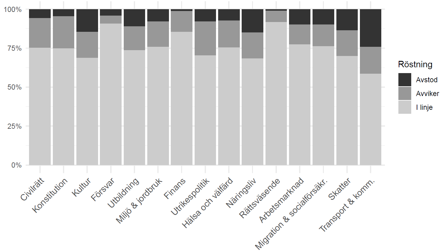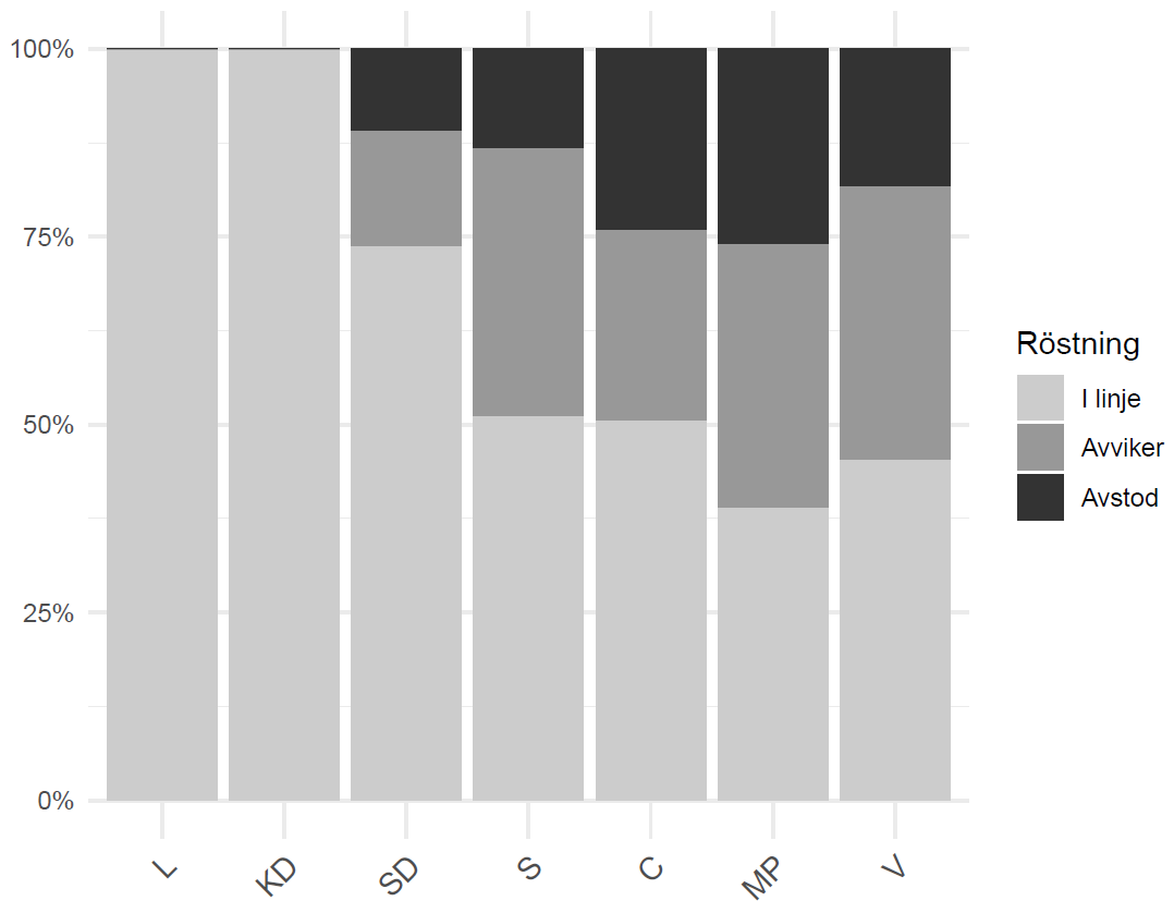 Källa: Egna beräkningar baserade på voteringar i riksdagen, data från Riksdagens öppna API.