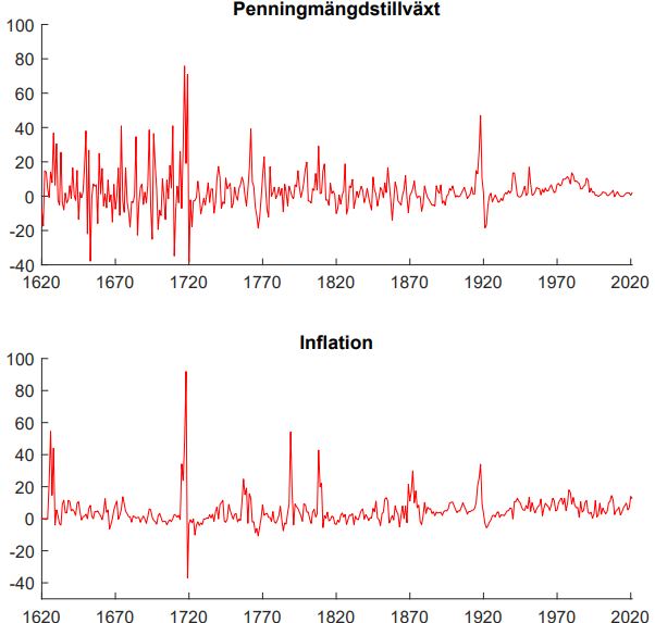 I denna artikel har vi analyserat huruvida penningmängdstillväxt kan prognostisera inflation i Sverige. Detta har gjorts på ett datamaterial som sträcker sig från 1620 till 2021.