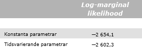 Tabell 1. Log-marginal likelihood för BVAR-modeller med olika antaganden rörande modellens dynamik