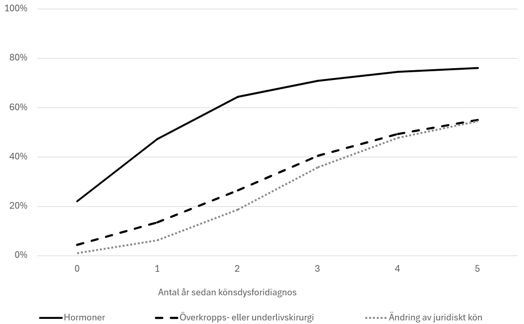 Anm: Panelen innehåller bara personer som vi kan följa alla fem år efter könsdysforidiagnosen.